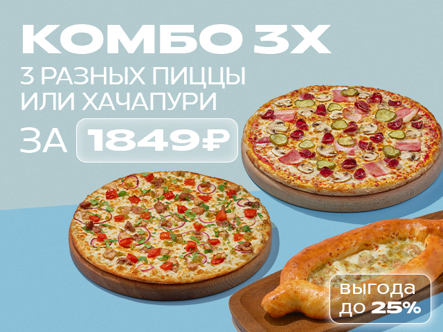 Выбери комбо из трех пицц или хачапури за 1849 рублей
