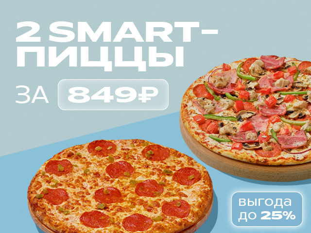 Выбери две разные smart-пиццы и закажи их всего за 849 рублей