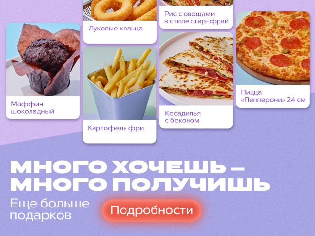 Оформи заказ через мобильное приложение или сайт на сумму более 1900 рублей и получи подарок на выбор!