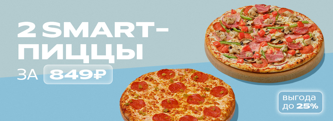Выбери две разные smart-пиццы и закажи их всего за 849 рублей.