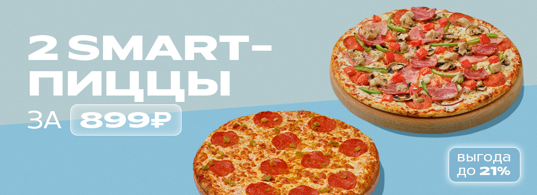 Выбери две разные smart-пиццы и закажи их всего за 899 рублей.